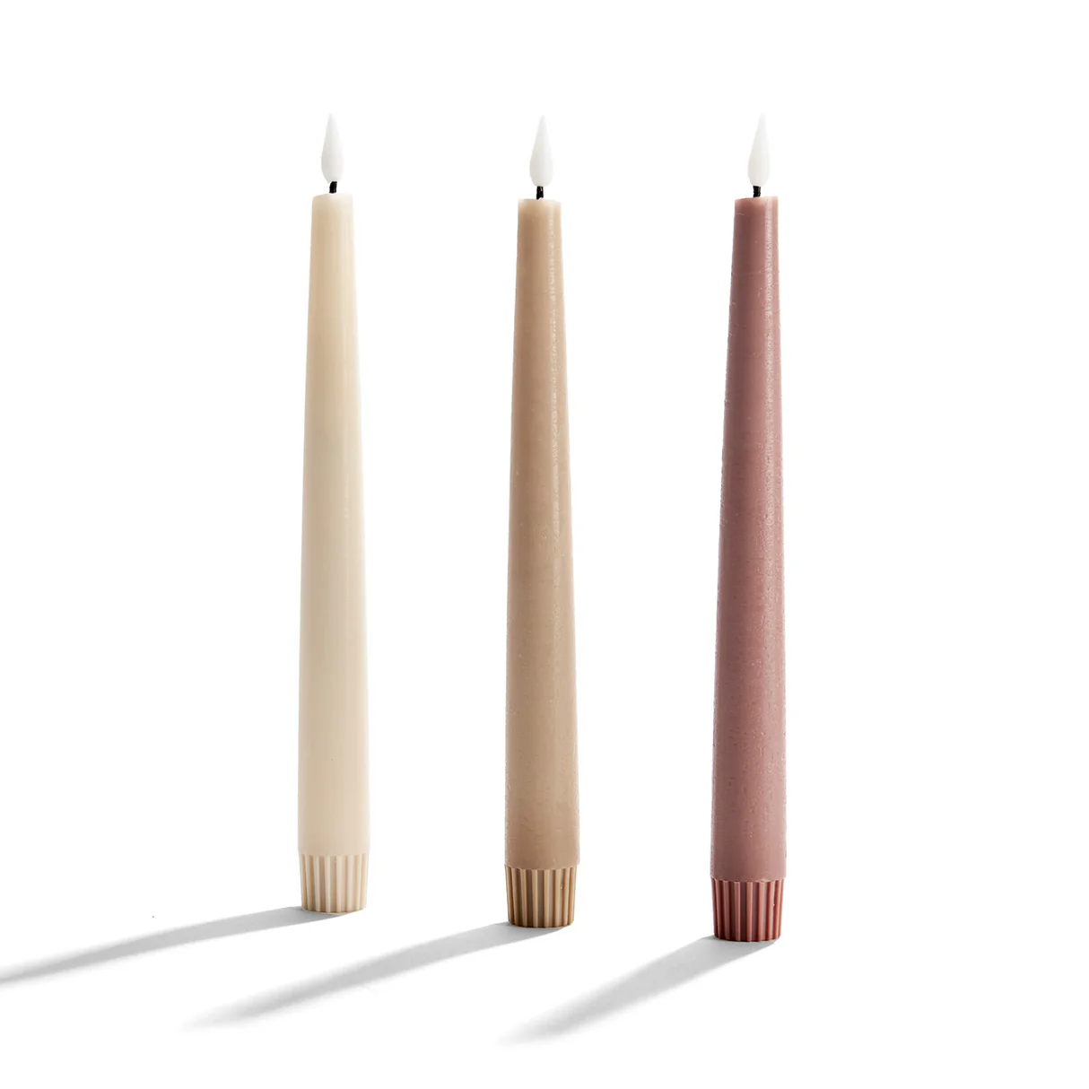 Available in a variety of styles and heights, including pillar candle trios and 3-wick LED designs, each candle features a true-to-life flickering flame for an authentic glow. Every battery candle includes a remote control for effortless operation and customizable settings.